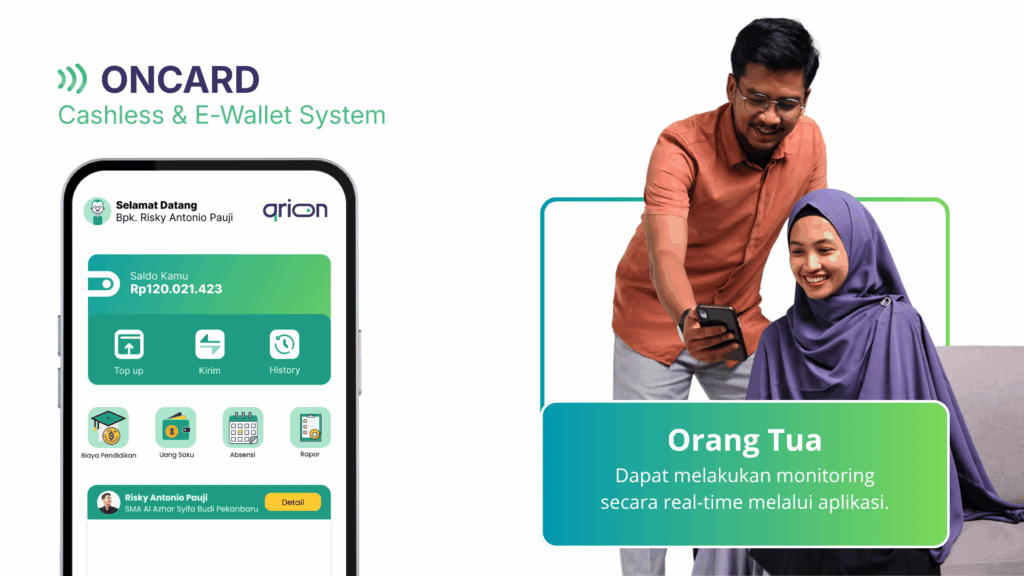 Salah satu contoh nyata adalah penerapan ekosistem QRION di SMP SMA Al Azhar Syifa Budi Pekanbaru II melalui implementasi Oncard sebagai sistem cashless school.